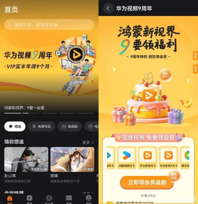作为一枚资深“维娜丝”,我最近的生活KPI就是——蹲《赴山海》,必须大喊一句:娜扎饰演的萧雪鱼姐姐也太飒了吧!清冷果敢,战损妆绝美。当然,成毅这次一人分饰三角(社畜肖明明、侠客萧秋水、反派李沉舟)也超级带感,打戏丝滑,不愧是你!       重点是,我这次追剧还解锁了一个好用的新阵地——华为视频。不仅影剧综全网同步首播,内容也实时更新,让我能第一时间冲锋陷阵刷姐姐的新剧!       当我追完更新,意犹未尽想去考古一下娜扎以前的作品时,突然发现华为视频整合了芒果TV、优酷、腾讯等多家视频平台的影剧综内容。以前我想重温娜扎,那叫一个折腾:想看《择天记》得打开腾讯,想看《风起西州》又得切到优酷……手机桌面排排坐,占内存不说,来回切换简直逼死强迫症。而现在,我只需要在华为视频里绑定已有的腾讯、优酷账号,就能直接在一个应用里观看这些平台的会员内容,不用反复跳转。       这波操作直接盘活了我所有的会员资产!我再也不用下载N个App了,只留一个华为视频就够。总之,维娜丝们、武侠粉们,《赴山海》必须冲!华为的胖友们,别浪费了自带的App,我们一起在华为视频给萧雪鱼姐姐打call去!       正值华为视频九周年庆典日(920)福利狂欢开启,9万份影视会员免费抽,华为影视、腾讯视频、优酷、芒果TV等多平台月卡,畅享《天龙八部》《射雕英雄传》《一代宗师》等全网热门武侠内容一网打尽。升级鸿蒙5.1的用户,还能参与“鸿蒙有礼”活动,每日打卡就能领取随机红包,享受到手的超值权益!赶紧登录华为视频,领取属于你的福利吧!       总而言之,此次体验不仅让《赴山海》成功“种草”心间,华为视频9周年福利更让人眼前一亮,让我们共赴《赴山海》的刀光剑影,在剧情里触摸萧秋水所代表的那份江湖快意与热血担当!