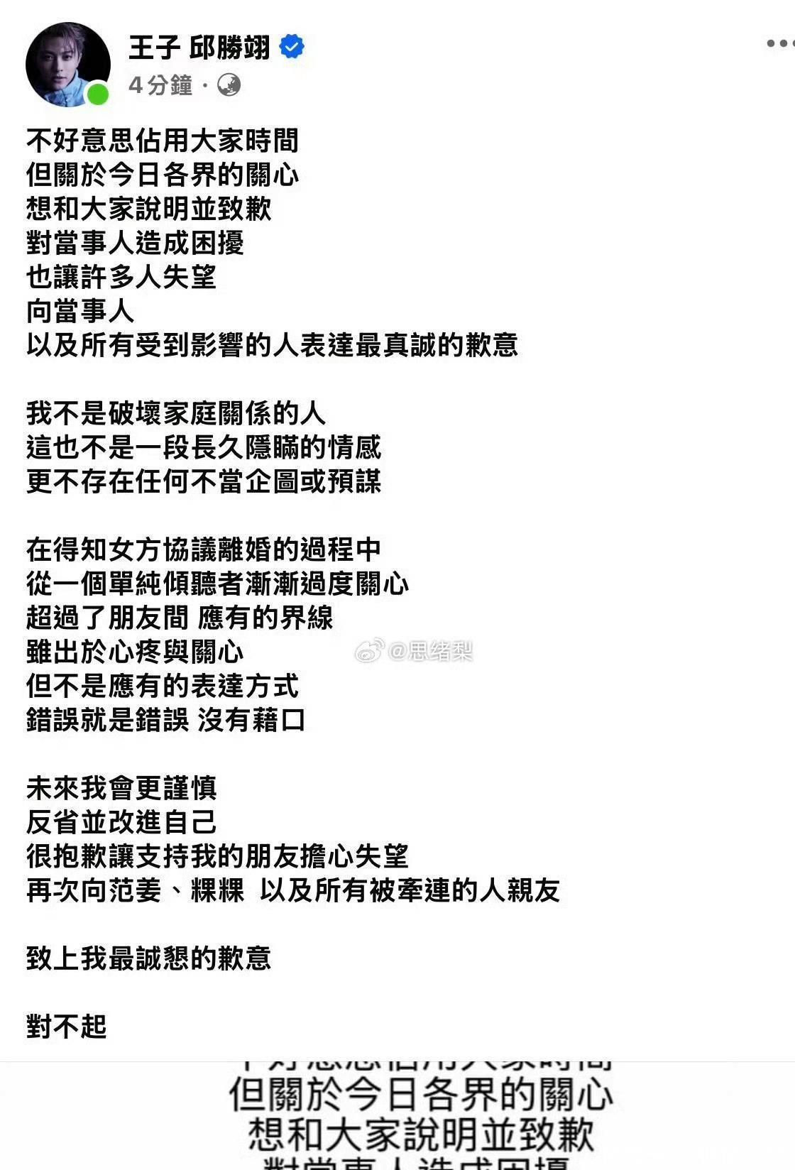 王子邱胜翊道歉声明,他承认介入别人的婚姻,棒棒糖成员怎么各个都这么抓马啊。